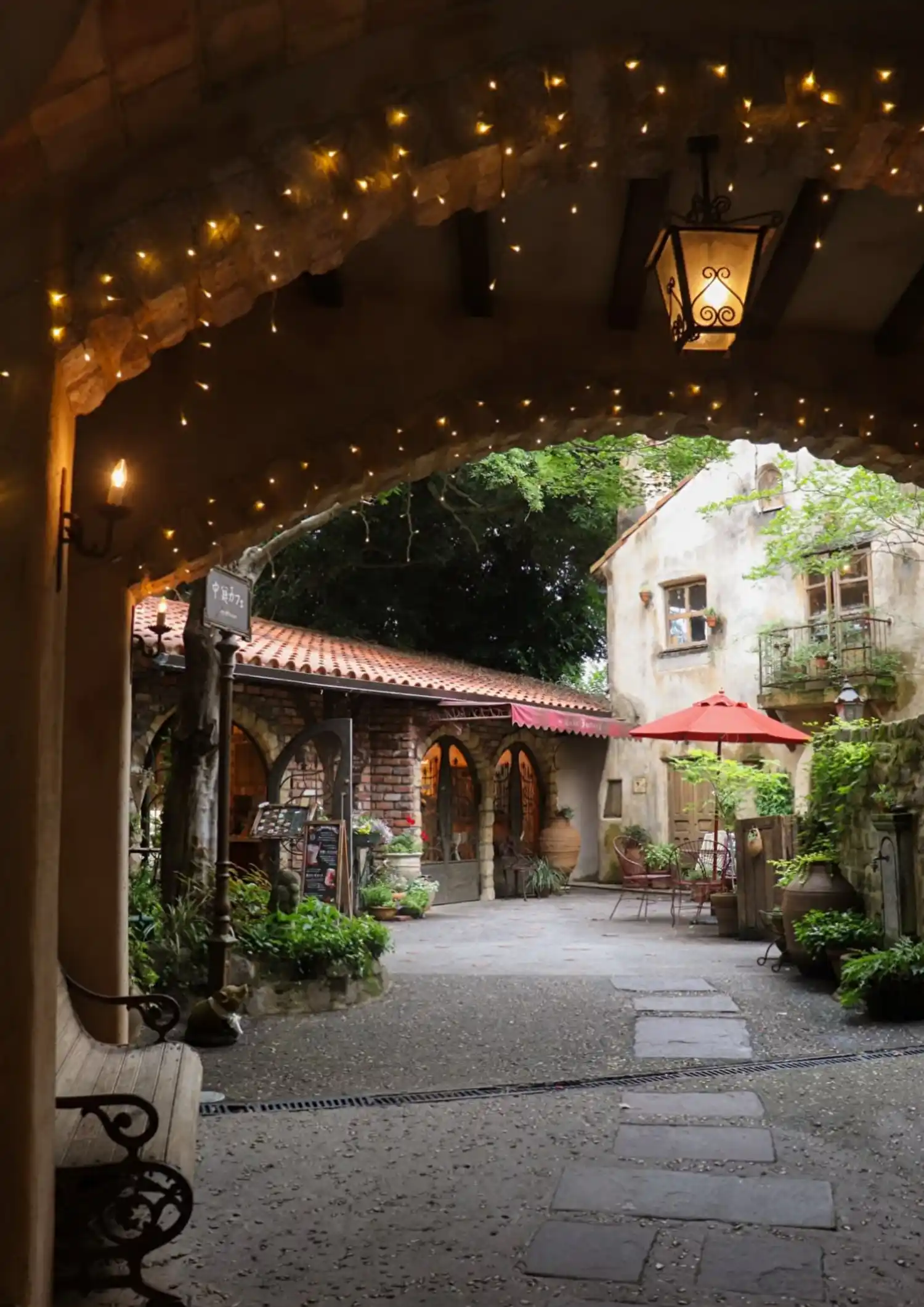閑静な住宅街に突如現れる中世ヨーロッパのとある小さな村に迷い込んだような…穏やかで絵本の世界観をもった空間です。