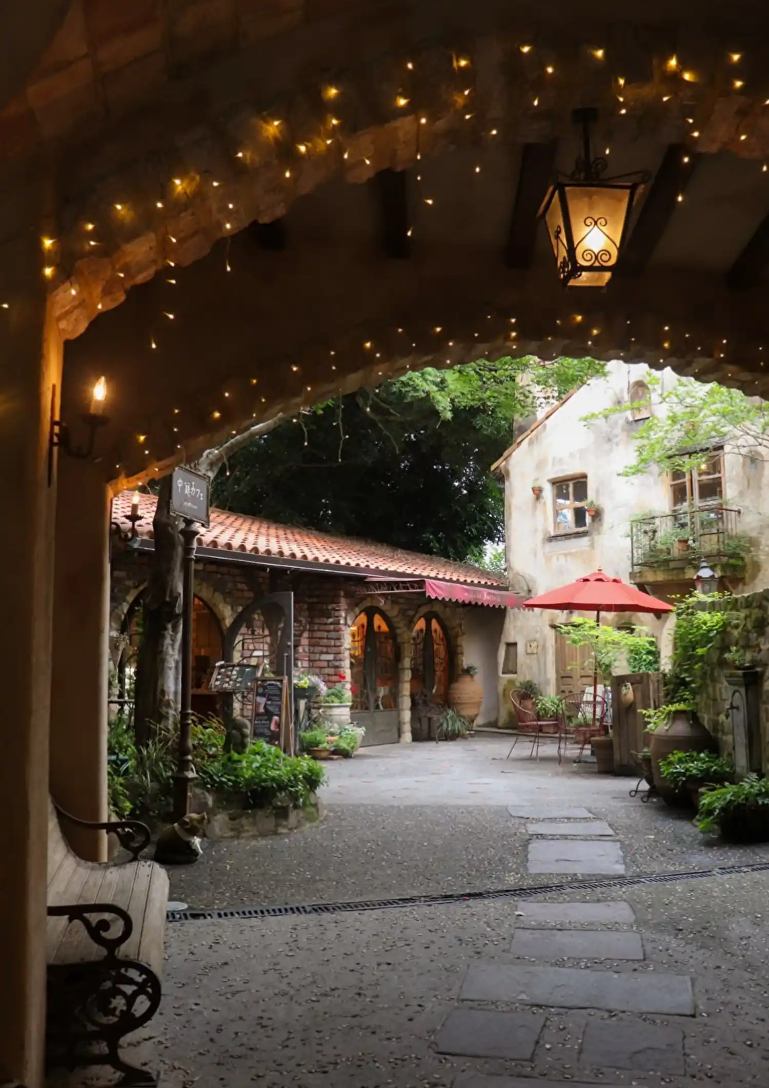 閑静な住宅街に突如現れる中世ヨーロッパのとある小さな村に迷い込んだような…穏やかで絵本の世界観をもった空間です。