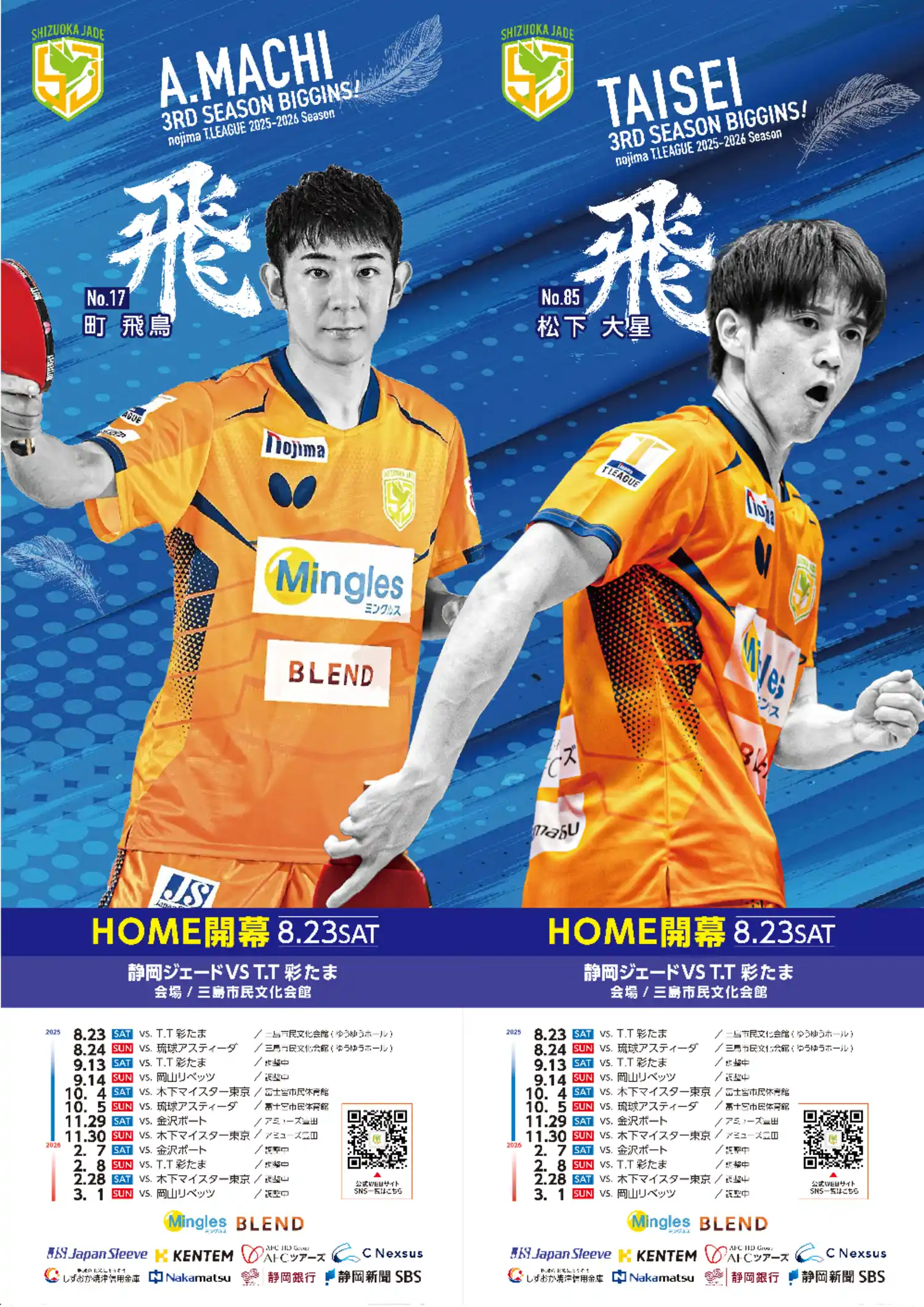 静岡ジェードは、「卓球で静岡を活性化しよう」をスローガンとして掲げています。